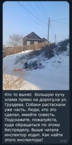 Из-за крутого подъема и накатов, часть домов оказалась недоступна для подъезда спецтехники. Мусор накопился, посыпались жалобы в адрес регионального оператора. В просьбе установить контейнеры администрация отказала. В качестве решения представители муниципалитета предложили жителям вынести мешки с отходами на дорогу. «Подключились» безнадзорные собаки. В результате экипажу мусоровоза пришлось по факту ликвидировать несанкционированную свалку.