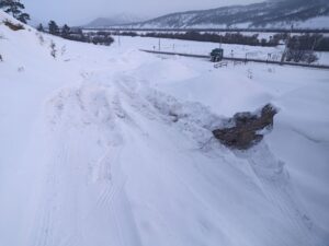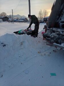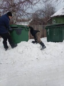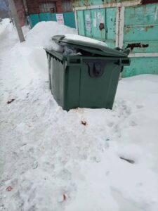 И пока к одним местам сбора отходов сложно проехать, возле других приходится усиленно поработать лопатой. Контейнеры в снегу — еще один квест. Так, в Выдрино этой зимой, экипажам мусоровозов пришлось непросто. Прежде чем произвести погрузку контейнеров, их буквально приходилось выкапывать из снега.