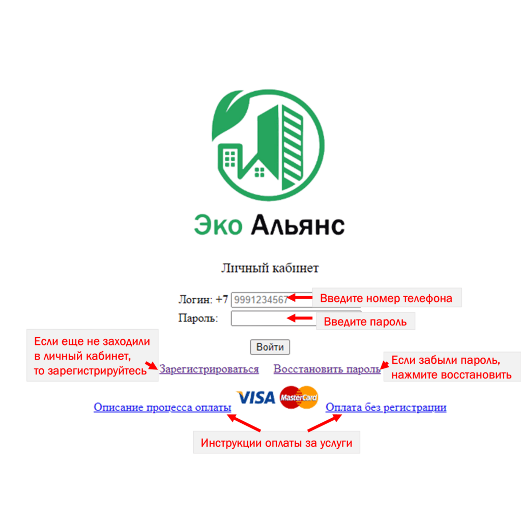 Перейдите на страницу личного кабинета по ссылке https://eco.m-pays.ru/Login.