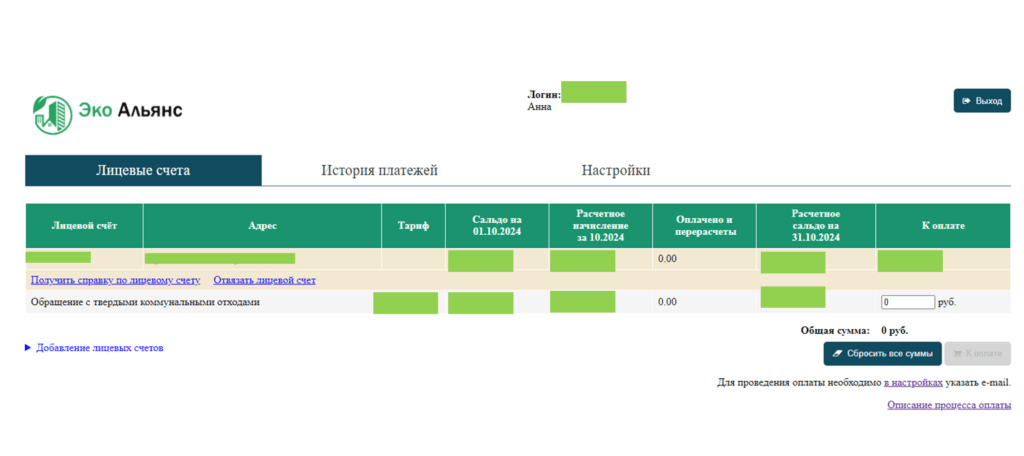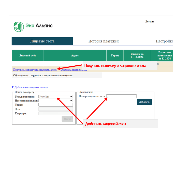 2. Проверьте привязанный лицевой счет / добавьте лицевой счет по адресу или по номеру лицевого