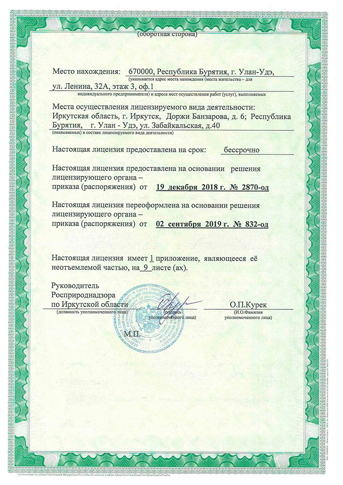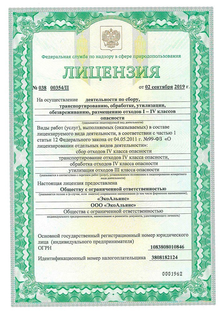 Скачать лицензию на осуществление работ ООО «ЭкоАльянс»